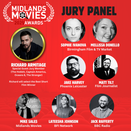 Richard joins key film representatives on the jury which includes Sophie Ivanova & Mellissa Donnello (Birmingham Film & TV Market), Jake Harvey (Phoenix Cinema), Nicola Prestage (BAFTA-nominated filmmaker), Jack Rafferty (BBC Leicester), Matt Tilt (film critic), Lateesha Johnson (BFI) & Mike Sales (Midlands Movies). Midlands Movies are also pleased to announce the prestigious ceremony will take place on Saturday 14th June 2025 at The Y Theatre in Leicester. The night celebrates the best creative film talent in the region with red carpet photos, awards presentations, prizes, networking opportunities, drinks and more!